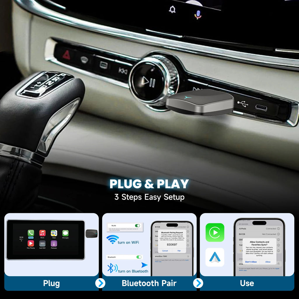 2-in-1 Wired to Wireless CarPlay Adapter & Android Auto Wireless Adapter Plug & Play